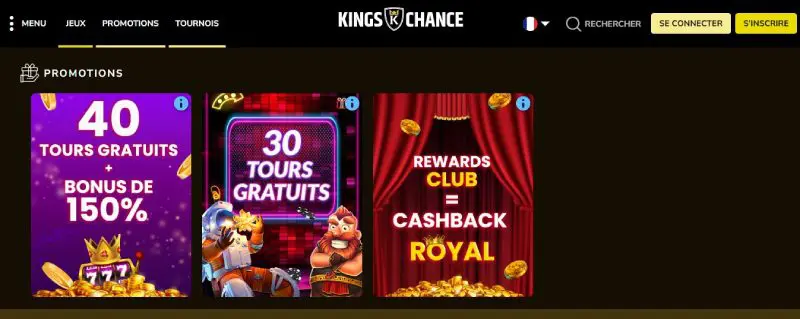Kings Chance se présente comme un casino en ligne multijeux en français, avec une offre assez large sur le papier : machines à sous, jeux de table, vidéo poker, section live et promotions récurrentes. La question utile n’est donc pas “est-ce qu’il y a un bonus ?”, mais plutôt : le casino est-il lisible, correctement structuré, et les conditions sont-elles assez claires pour limiter les mauvaises surprises ?